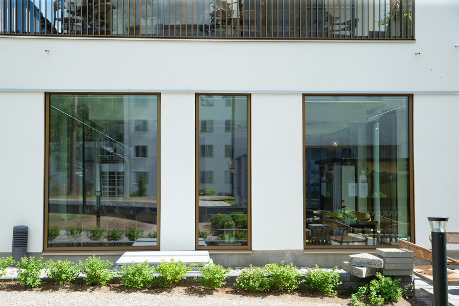 Lasiseinistä voidaan tehdä isoja yhtenäisiä lasipintoja ulkoseiniin.